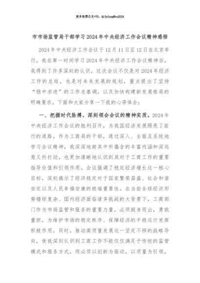 【七哥公文】2024年:市市场监管局干部学习2024年中央经济工作会议精神感悟+更多免费公文+VX:QiGeGongWen2024+更多免费公文+VX:QiGeGongWen2024