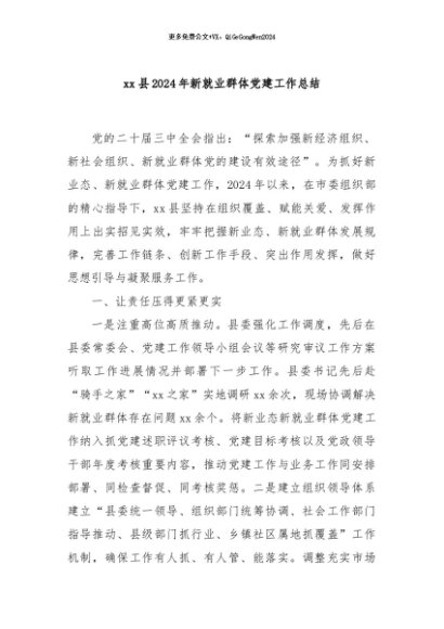 【七哥公文】2024年:xx县2024年新就业群体党建工作总结+更多免费公文+VX:QiGeGongWen2024+更多免费公文+VX:QiGeGongWen2024