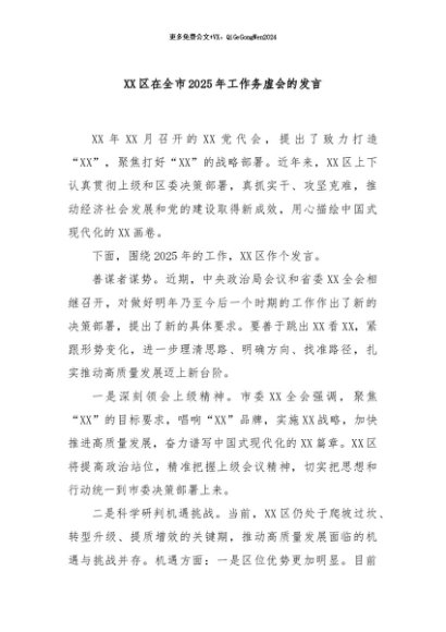 【七哥公文】2024年:XX区在全市2025年工作务虚会的发言+更多免费公文+VX:QiGeGongWen2024+更多免费公文+VX:QiGeGongWen2024