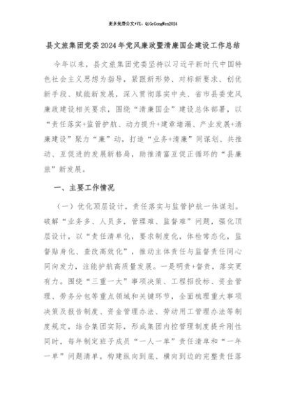 【七哥公文】2024年:县文旅集团党委2024年党风廉政暨清廉国企建设工作总结+更多免费公文+VX:QiGeGongWen2024+更多免费公文+VX:QiGeGongWen2024