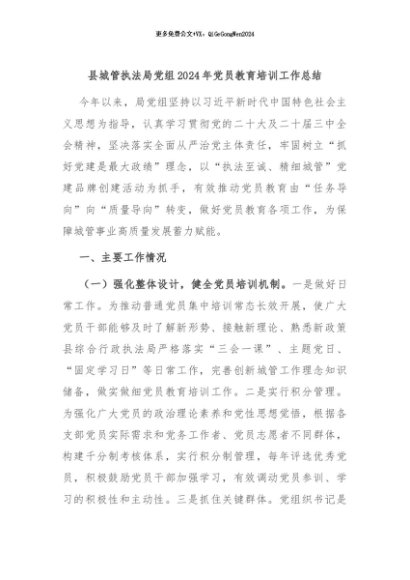 【七哥公文】2024年:县城管执法局党组2024年党员教育培训工作总结+更多免费公文+VX:QiGeGongWen2024+更多免费公文+VX:QiGeGongWen2024