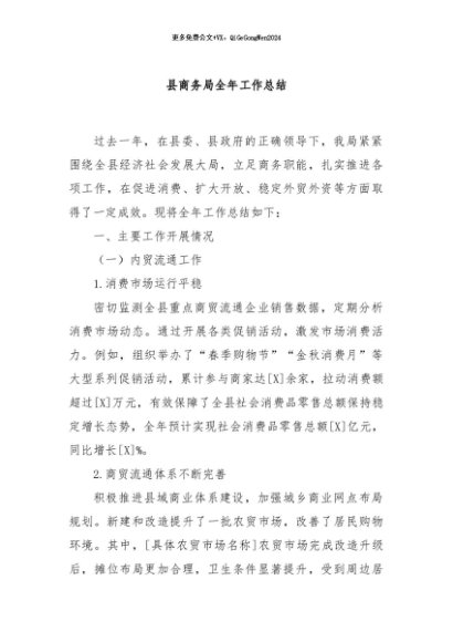 【七哥公文】2024年:县商务局全年工作总结+更多免费公文+VX:QiGeGongWen2024+更多免费公文+VX:QiGeGongWen2024