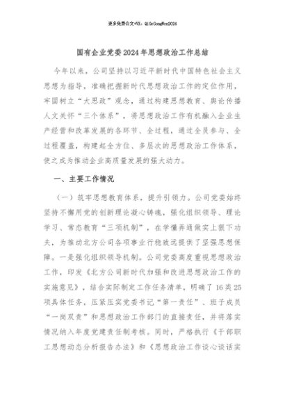 【七哥公文】2024年:国有企业党委2024年思想政治工作总结+更多免费公文+VX:QiGeGongWen2024+更多免费公文+VX:QiGeGongWen2024