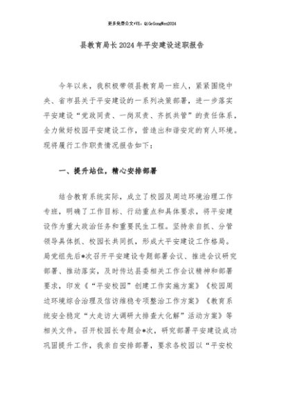 【七哥公文】2024年:县教育局长2024年平安建设述职报告+更多免费公文+VX:QiGeGongWen2024+更多免费公文+VX:QiGeGongWen2024