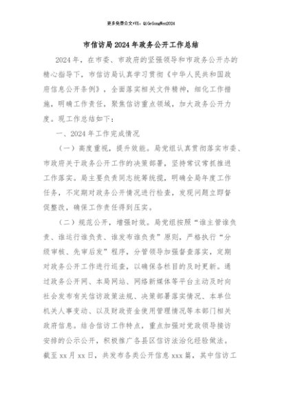 【七哥公文】2024年:市信访局2024年政务公开工作总结+更多免费公文+VX:QiGeGongWen2024+更多免费公文+VX:QiGeGongWen2024