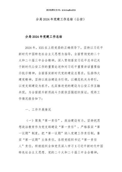 【七哥公文】2024年:分局2024年党建工作总结(公安)+更多免费公文+VX:QiGeGongWen2024+更多免费公文+VX:QiGeGongWen2024