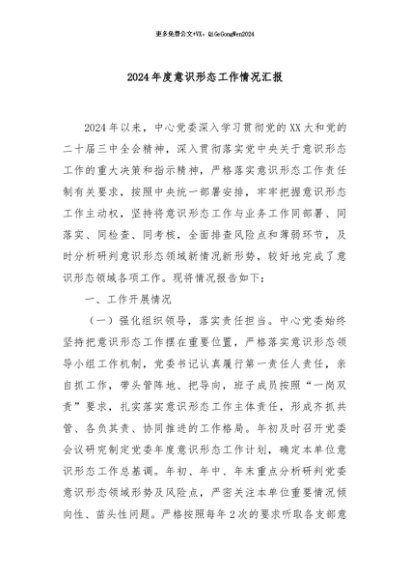 【七哥公文】2024年:2024年度意识形态工作情况汇报+更多免费公文+VX:QiGeGongWen2024+更多免费公文+VX:QiGeGongWen2024