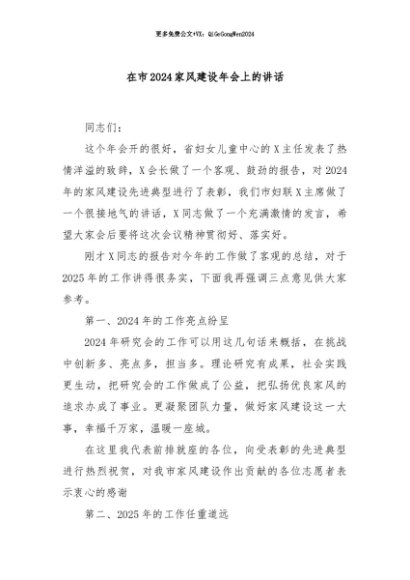 【七哥公文】2024年:在市2024家风建设年会上的讲话+更多免费公文+VX:QiGeGongWen2024+更多免费公文+VX:QiGeGongWen2024