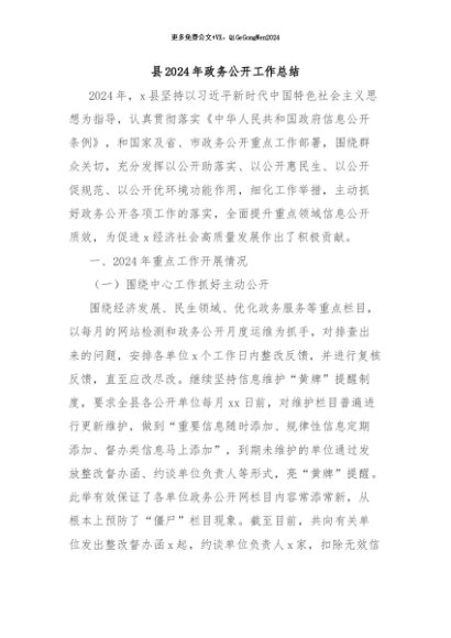 【七哥公文】2024年:县2024年政务公开工作总结+更多免费公文+VX:QiGeGongWen2024+更多免费公文+VX:QiGeGongWen2024