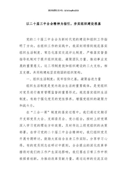 【七哥公文】2024年:以二十届三中全会精神为指引,夯实组织建设根基+更多免费公文+VX:QiGeGongWen2024+更多免费公文+VX:QiGeGongWen2024