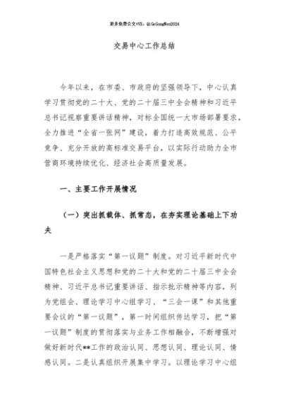 【七哥公文】2024年:交易中心工作总结+更多免费公文+VX:QiGeGongWen2024+更多免费公文+VX:QiGeGongWen2024