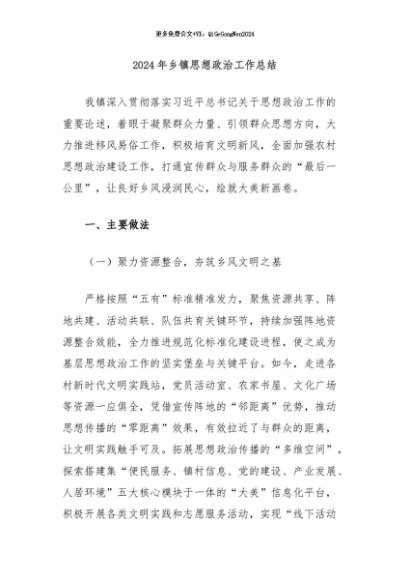 【七哥公文】2024年:2024年乡镇思想政治工作总结+更多免费公文+VX:QiGeGongWen2024+更多免费公文+VX:QiGeGongWen2024