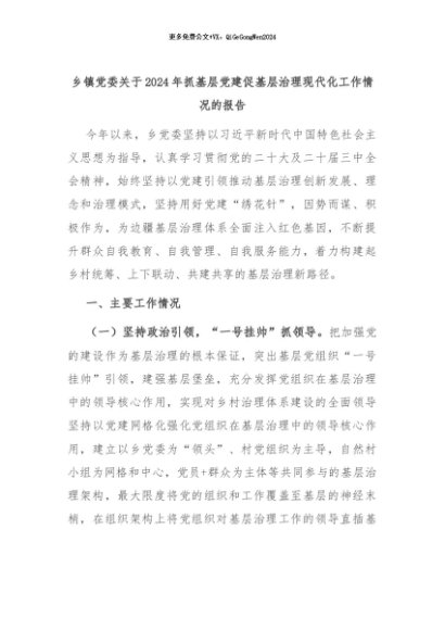 【七哥公文】2024年:乡镇党委关于2024年抓基层党建促基层治理现代化工作情况的报告+更多免费公文+VX:QiGeGongWen2024+更多免费公文+VX:QiGeGongWen2024
