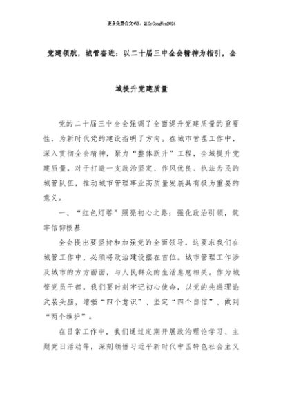 【七哥公文】2024年:党建领航,城管奋进:以二十届三中全会精神为指引,全域提升党建质量+更多免费公文+VX:QiGeGongWen2024+更多免费公文+VX:QiGeGongWen2024