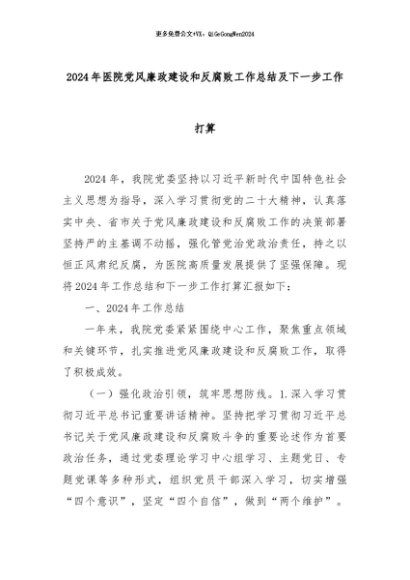 【七哥公文】2024年:2024年医院党风廉政建设和反腐败工作总结及下一步工作打算+更多免费公文+VX:QiGeGongWen2024+更多免费公文+VX:QiGeGongWen2024