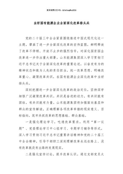【七哥公文】2024年:当好国有能源企业全面深化改革排头兵+更多免费公文+VX:QiGeGongWen2024+更多免费公文+VX:QiGeGongWen2024