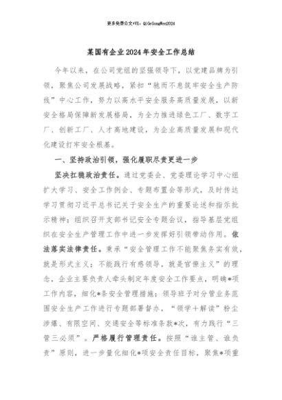 【七哥公文】2024年:某国有企业2024年安全工作总结+更多免费公文+VX:QiGeGongWen2024+更多免费公文+VX:QiGeGongWen2024