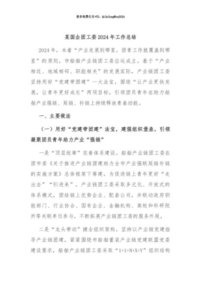 【七哥公文】2024年:某国企团工委2024年工作总结+更多免费公文+VX:QiGeGongWen2024+更多免费公文+VX:QiGeGongWen2024