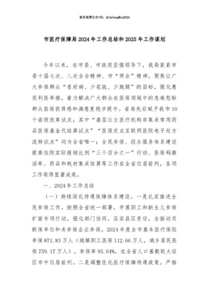 【七哥公文】2024年:市医疗保障局2024年工作总结和2025年工作谋划+更多免费公文+VX:QiGeGongWen2024+更多免费公文+VX:QiGeGongWen2024