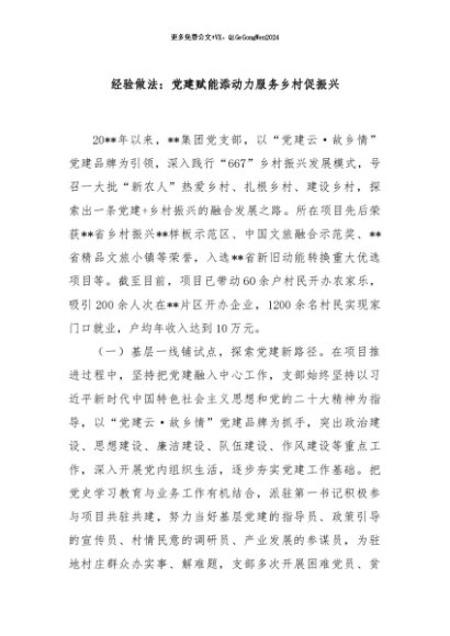 【七哥公文】2024年:经验做法:党建赋能添动力服务乡村促振兴+更多免费公文+VX:QiGeGongWen2024+更多免费公文+VX:QiGeGongWen2024
