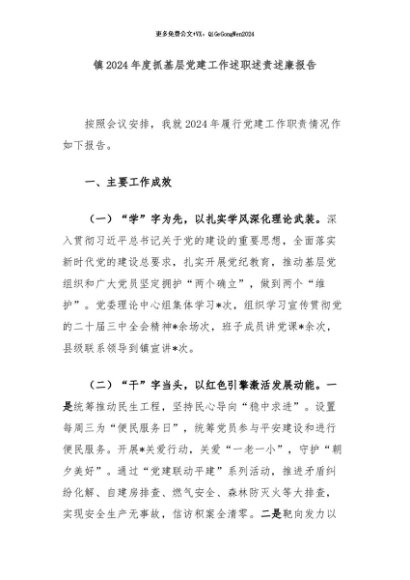 【七哥公文】2024年:镇2024年度抓基层党建工作述职述责述廉报告+更多免费公文+VX:QiGeGongWen2024+更多免费公文+VX:QiGeGongWen2024