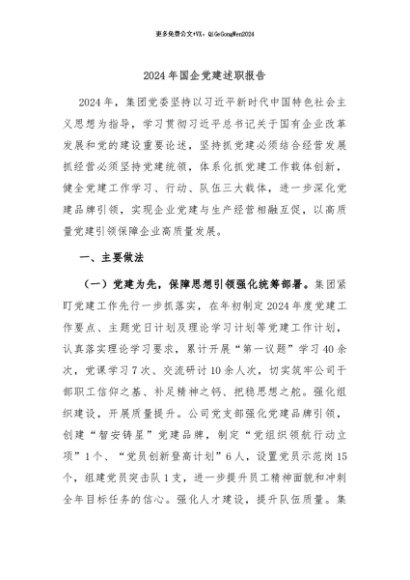 【七哥公文】2024年:2024年国企党建述职报告+更多免费公文+VX:QiGeGongWen2024+更多免费公文+VX:QiGeGongWen2024