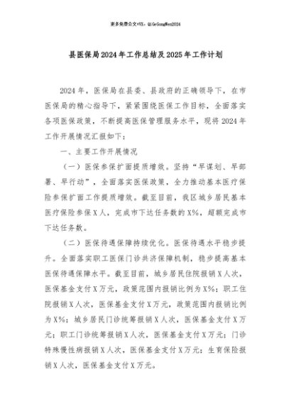 【七哥公文】2024年:县医保局2024年工作总结及2025年工作计划+更多免费公文+VX:QiGeGongWen2024+更多免费公文+VX:QiGeGongWen2024