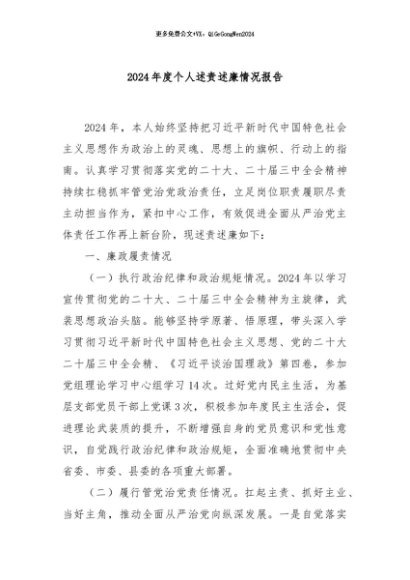 【七哥公文】2024年:2024年度个人述责述廉情况报告+更多免费公文+VX:QiGeGongWen2024+更多免费公文+VX:QiGeGongWen2024