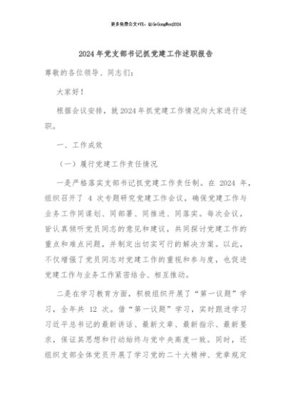 【七哥公文】2024年:2024年党支部书记抓党建工作述职报告+更多免费公文+VX:QiGeGongWen2024+更多免费公文+VX:QiGeGongWen2024
