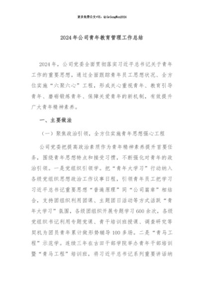 【七哥公文】2024年:2024年公司青年教育管理工作总结+更多免费公文+VX:QiGeGongWen2024+更多免费公文+VX:QiGeGongWen2024