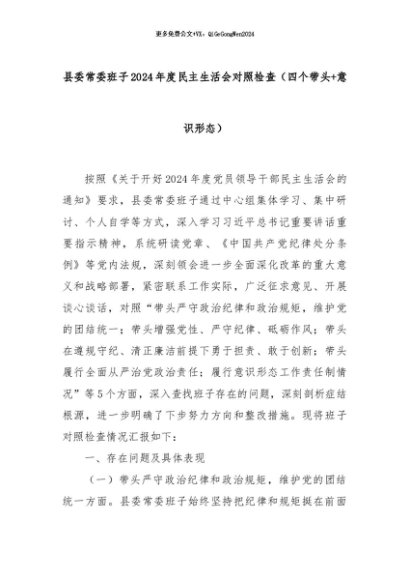【七哥公文】2024年:县委常委班子2024年度民主生活会对照检查(四个带头+意识形态)+更多免费公文+VX:QiGeGongWen2024+更多免费公文+VX:QiGeGongWen2024