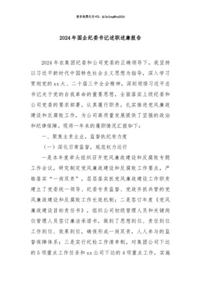 【七哥公文】2024年:2024年国企纪委书记述职述廉报告+更多免费公文+VX:QiGeGongWen2024+更多免费公文+VX:QiGeGongWen2024