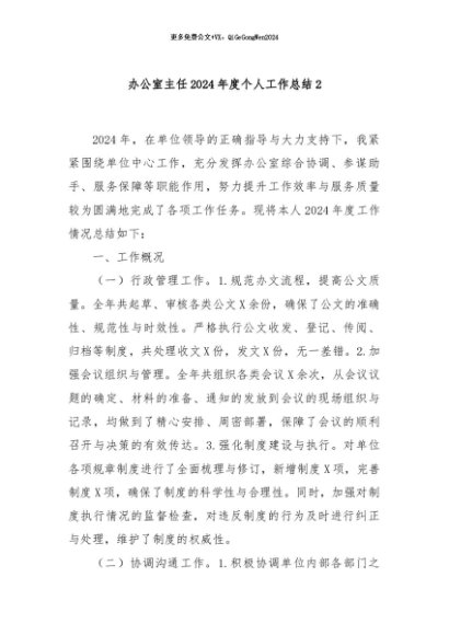 【七哥公文】2024年:办公室主任2024年度个人工作总结2+更多免费公文+VX:QiGeGongWen2024+更多免费公文+VX:QiGeGongWen2024