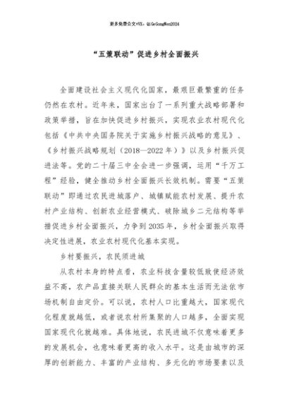 【七哥公文】2024年:“五策联动”促进乡村全面振兴+更多免费公文+VX:QiGeGongWen2024+更多免费公文+VX:QiGeGongWen2024
