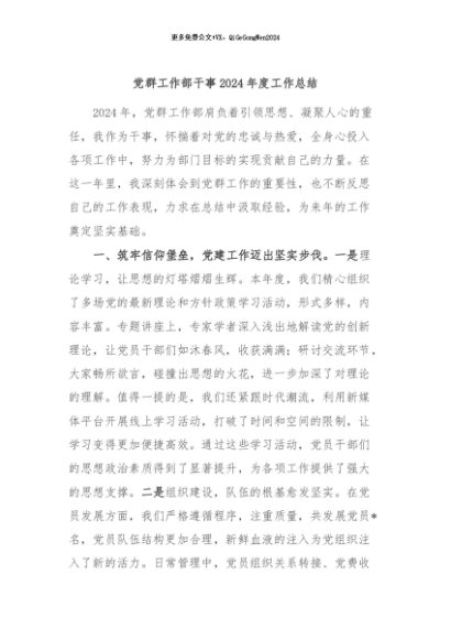 【七哥公文】2024年:党群工作部干事2024年度工作总结+更多免费公文+VX:QiGeGongWen2024+更多免费公文+VX:QiGeGongWen2024