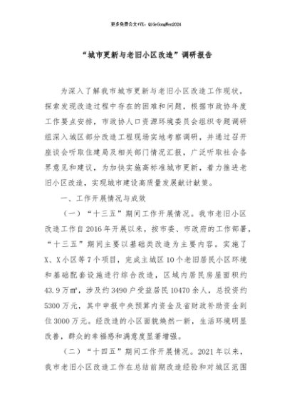 【七哥公文】2024年:“城市更新与老旧小区改造”调研报告+更多免费公文+VX:QiGeGongWen2024+更多免费公文+VX:QiGeGongWen2024