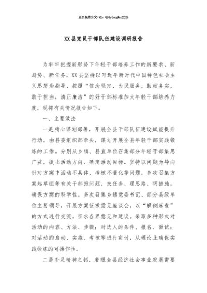 【七哥公文】2024年:XX县党员干部队伍建设调研报告+更多免费公文+VX:QiGeGongWen2024+更多免费公文+VX:QiGeGongWen2024