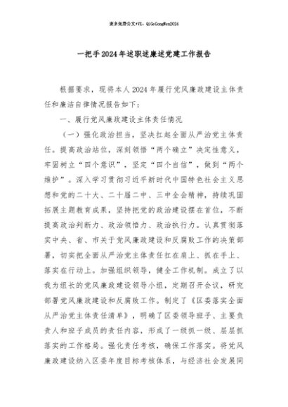 【七哥公文】2024年:一把手2024年述职述廉述党建工作报告+更多免费公文+VX:QiGeGongWen2024+更多免费公文+VX:QiGeGongWen2024