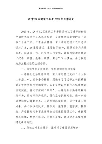 【七哥公文】2024年:XX市XX区建筑工务署2025年工作计划+更多免费公文+VX:QiGeGongWen2024+更多免费公文+VX:QiGeGongWen2024