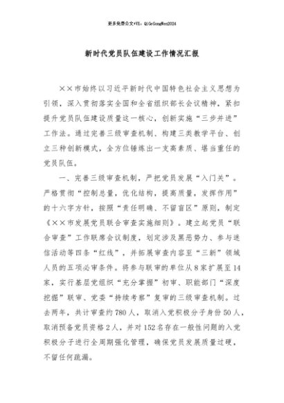 / 【七哥公文】2024年:新时代党员队伍建设工作情况汇报+更多免费公文+VX:QiGeGongWen2024