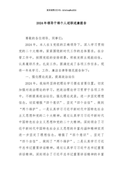 【七哥公文】2024年:2024年领导干部个人述职述廉报告+更多免费公文+VX:QiGeGongWen2024+更多免费公文+VX:QiGeGongWen2024