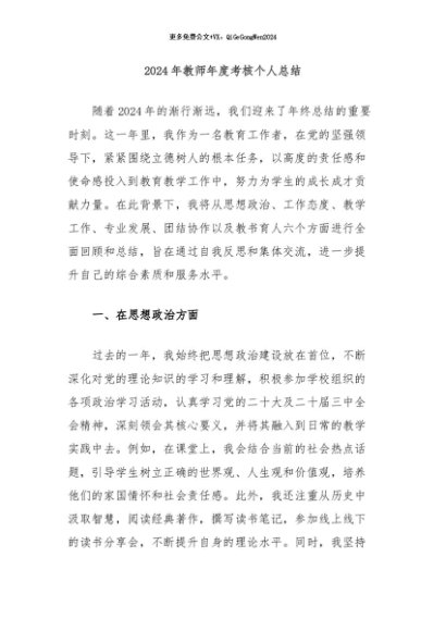 【七哥公文】2024年:2024年教师年度考核个人总结+更多免费公文+VX:QiGeGongWen2024+更多免费公文+VX:QiGeGongWen2024