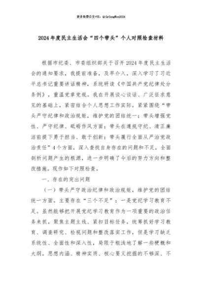 【七哥公文】2024年:2024年度民主生活会“四个带头”个人对照检查材料+更多免费公文+VX:QiGeGongWen2024+更多免费公文+VX:QiGeGongWen2024