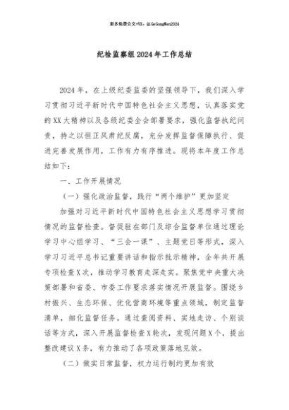 / 【七哥公文】2024年:纪检监察组2024年工作总结+更多免费公文+VX:QiGeGongWen2024