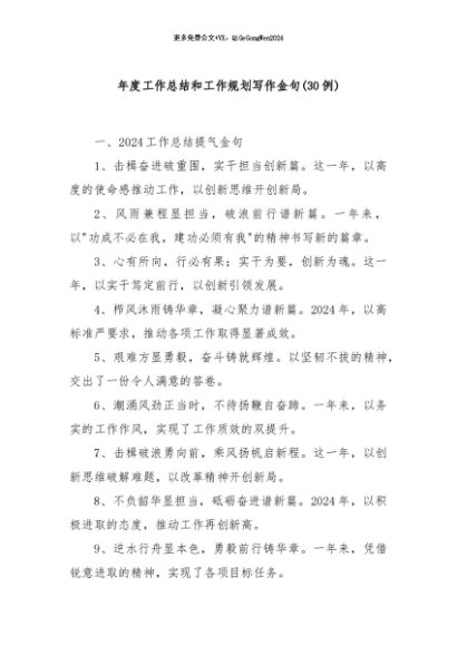 【七哥公文】2024年:(30例)年度工作总结和工作规划写作金句+更多免费公文+VX:QiGeGongWen2024+更多免费公文+VX:QiGeGongWen2024