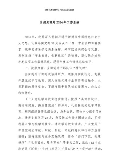 / 【七哥公文】2024年:自然资源局2024年工作总结+更多免费公文+VX:QiGeGongWen2024
