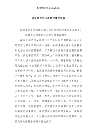 / 【七哥公文】2024年:理论学习中心组学习情况报告+更多免费公文+VX:QiGeGongWen2024