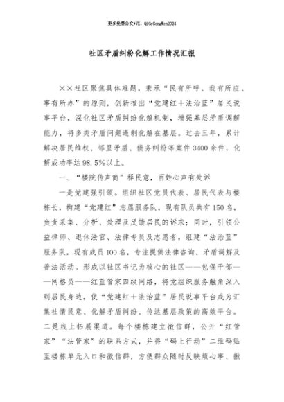 / 【七哥公文】2024年:社区矛盾纠纷化解工作情况汇报+更多免费公文+VX:QiGeGongWen2024