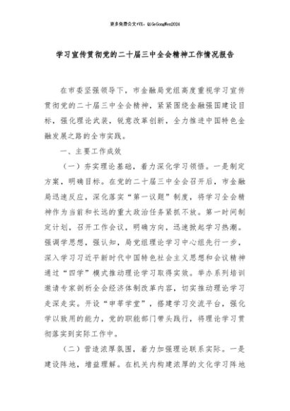 / 【七哥公文】2024年:学习宣传贯彻党的二十届三中全会精神工作情况报告+更多免费公文+VX:QiGeGongWen2024