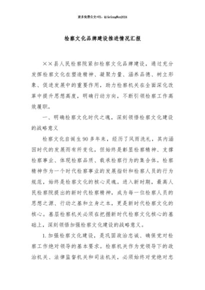 / 【七哥公文】2024年:检察文化品牌建设推进情况汇报+更多免费公文+VX:QiGeGongWen2024
